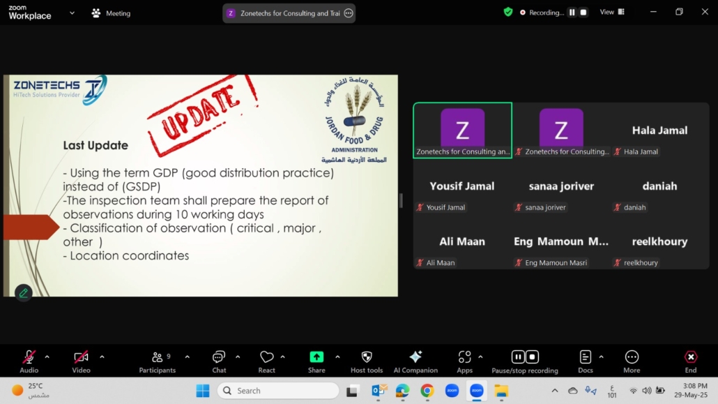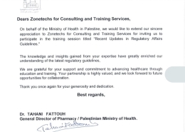 تتقدم شركة نطاق الدقة والجودة (Zonetechs) بخالص الشكر والتقدير إلى المؤسسة العامة للغذاء والدواء الأردنية (JFDA) على دعمها وتعاونها البنّاء في تنظيم الورشة التدريبية المتخصصة حول