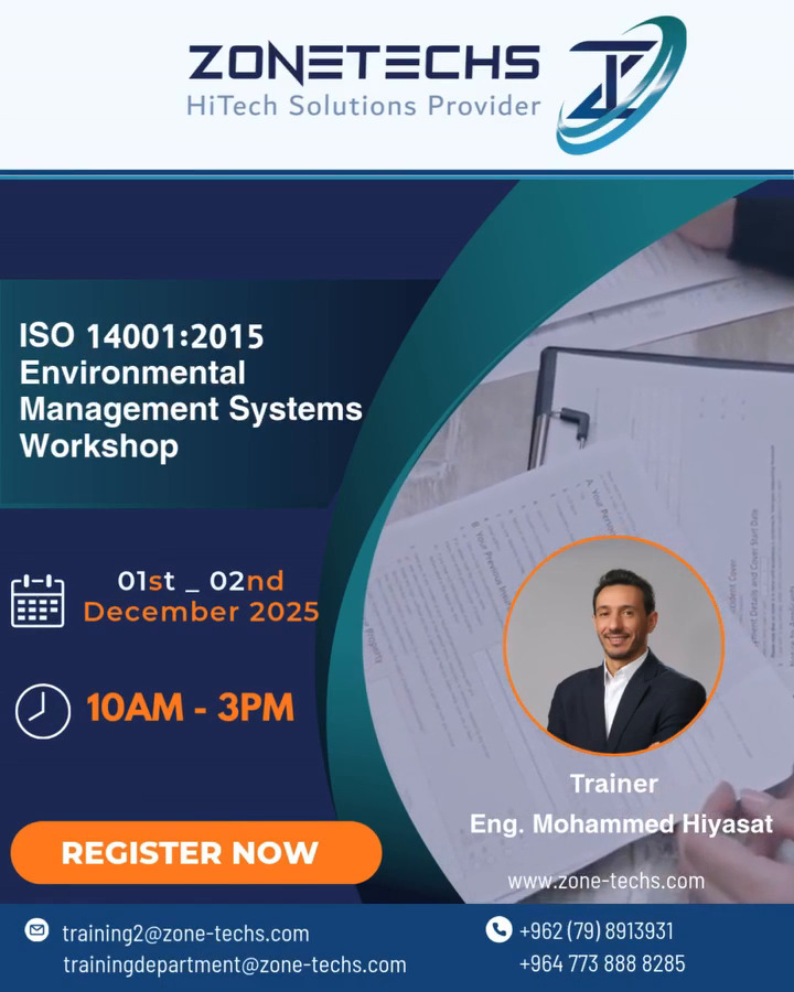 mohamad2026-01-13 18:30:412026-01-13 19:30:50Zonetechs Company, in collaboration with the German Jordanian University14001:2015 Environmental Management Systems