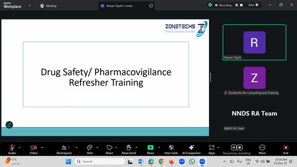 mohamad2026-01-13 17:57:552026-01-13 17:57:56Zonetechs has successfully completed the Pharmacovigilance Training based on the official Iraqi MOH Good Pharmacovigilance Practices (GVP) Guideline, held from 28th – 29th – 30th October, 2025 under the supervision and delivery of Dr. Rawan Tayeh. A significant step toward strengthening pharmacovigilance practices and promoting drug safety.